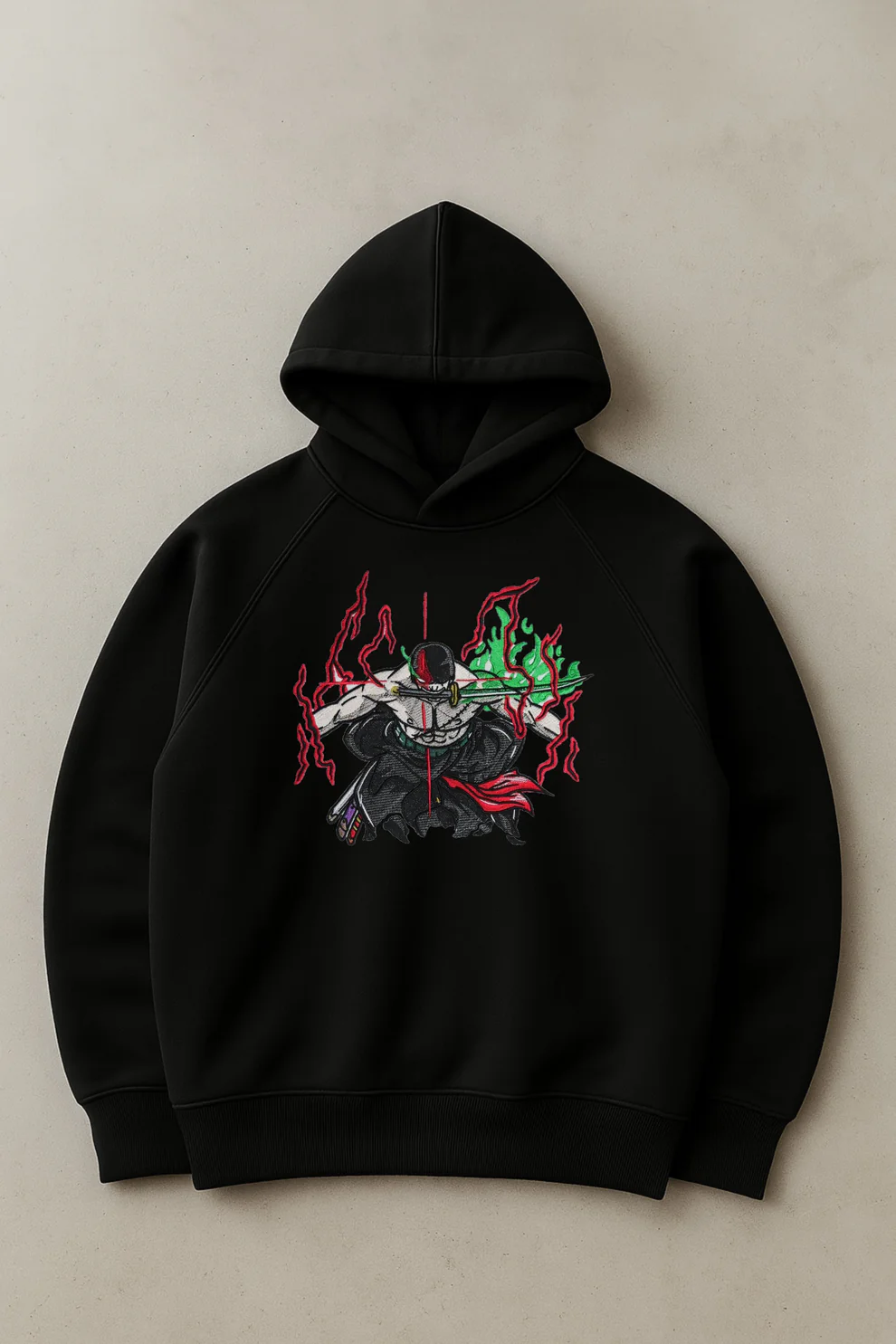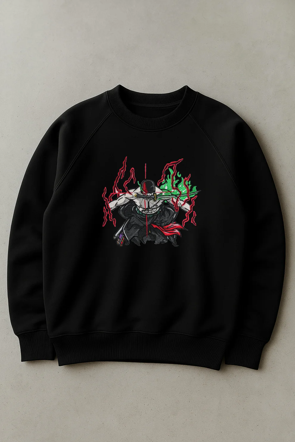 🔹 Inspiration: The transformation of Zoro — from swordsman to king of hell itself, the battle where he defeats king and sees a glimpse into the future.